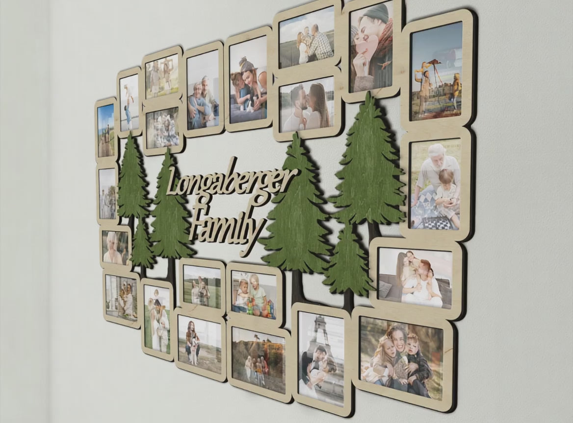 Nutzen Sie den Familienfotorahmen und erstellen Sie eine Familiencollage aus Ihren Lieblingsfotos, die ein Highlight der Inneneinrichtung wird.
