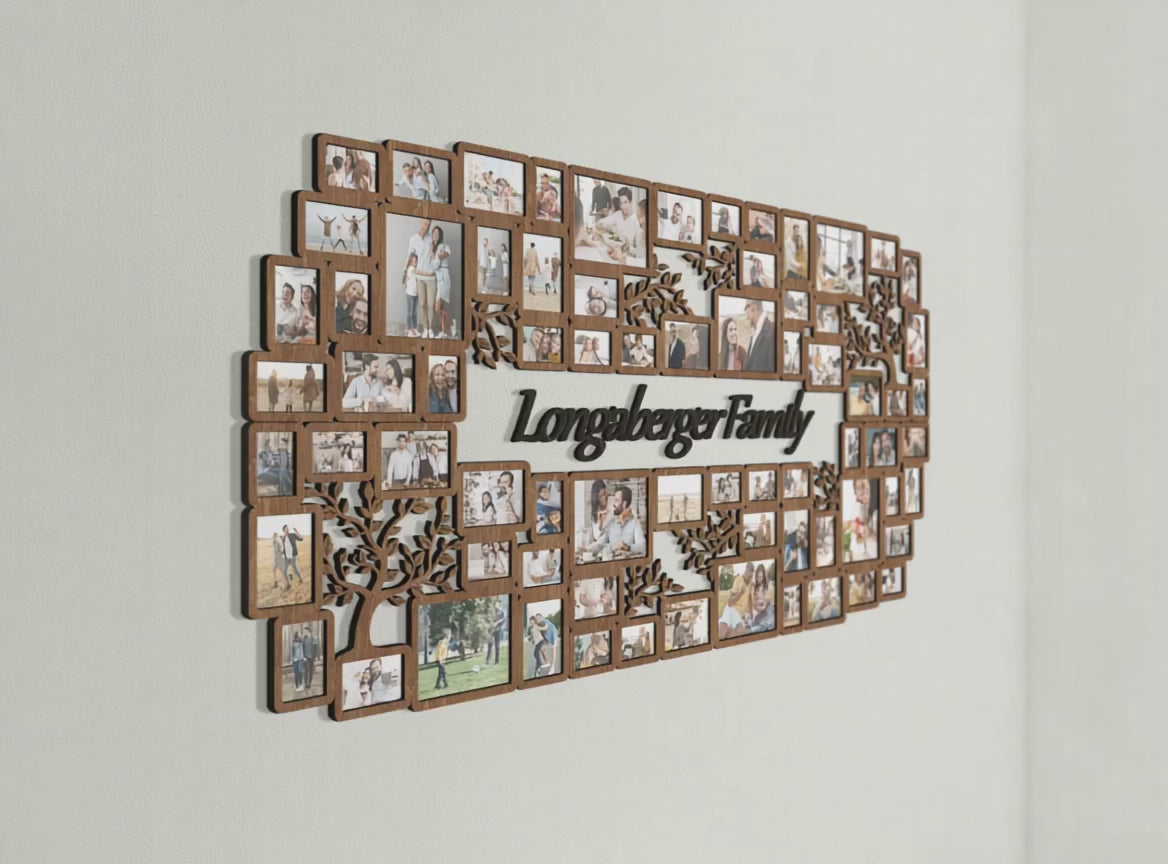 Transforma tu espacio vital con el Collage de árbol genealógico personalizado, una pieza central XXXL perfecta para mostrar tus preciados recuerdos. Este exclusivo collage con marco de madera combina elegancia, funcionalidad y un toque personal, lo que lo convierte en el complemento ideal para su hogar o en un maravilloso regalo para sus seres queridos.
