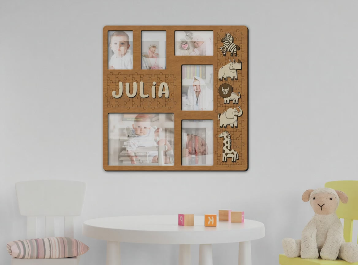 Capture y celebre los momentos más preciados de su hijo con este marco de fotos de animales personalizado.