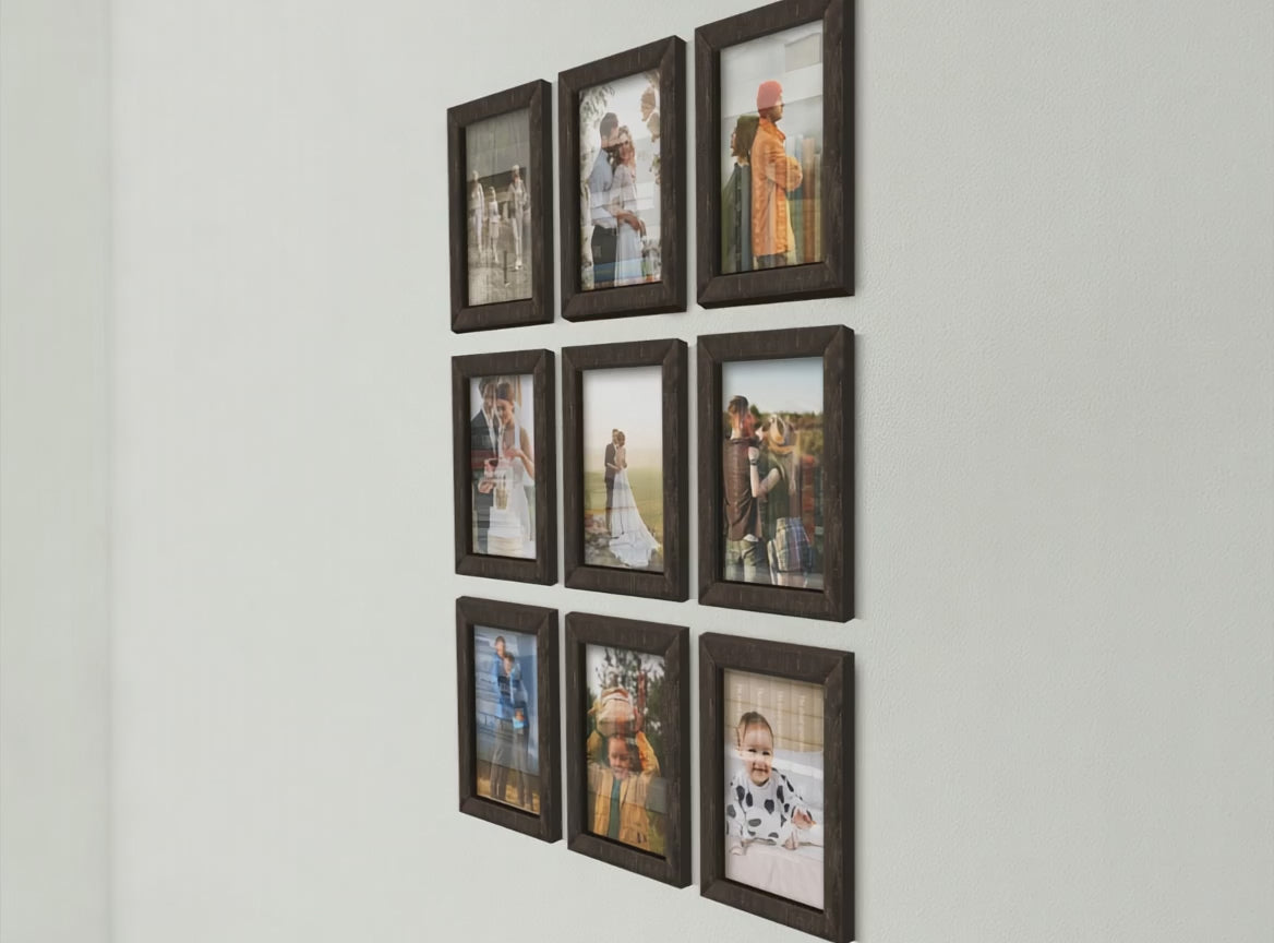 Cada marco cuenta con cubiertas de acrílico resistentes a los impactos, asegurando una protección duradera para tus fotos queridas.