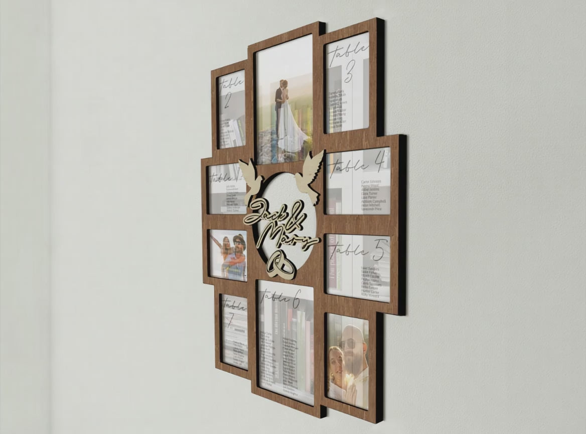 Plan de table de mariage personnalisé | Collage de cadres photo rustiques